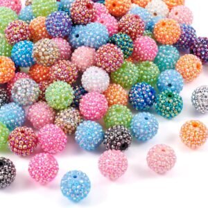50pcs 16mm Round Resin Rhinestone Chunky Bubblegum Ball Beads
