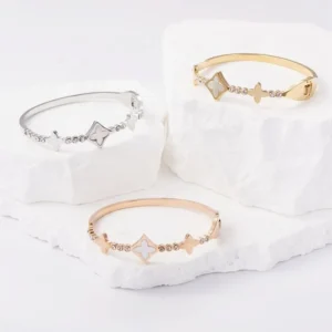Wholesale Custom 316L Stainless Steel Fashion Jewelry 18K Gold Plated Crystal Classic love Cuff Bracelet Bangle for Women Men
