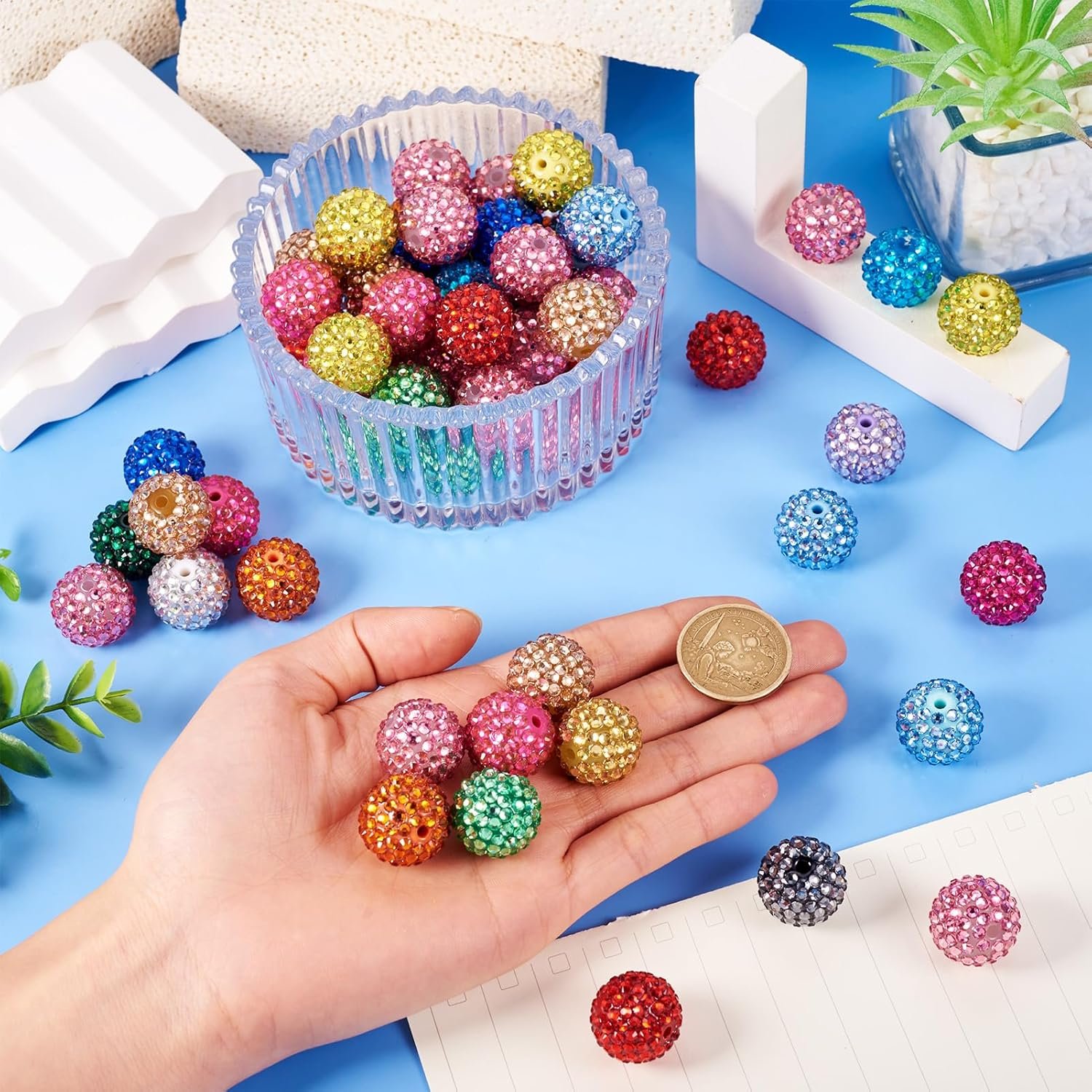- 100pcs Resin Rhinestone Chunky Round Beads.